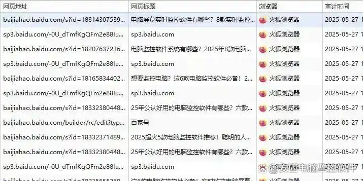 浏览器追踪:记录访问的网址、停留时间,支持黑白名单过滤。