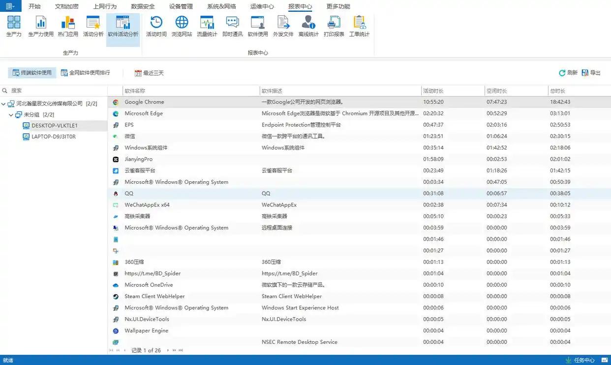 它有个 “智能分类” 黑科技,能自动把网页和程序归为 “工作类”“娱乐类”“风险类”,管理员点一下就能看所有娱乐行为记录。