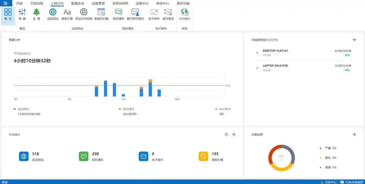 记录员工使用的应用程序和浏览的网页,帮助管理者掌握员工的行为动态。当发现异常行为时会及时报警,提醒管理者关注潜在风险。