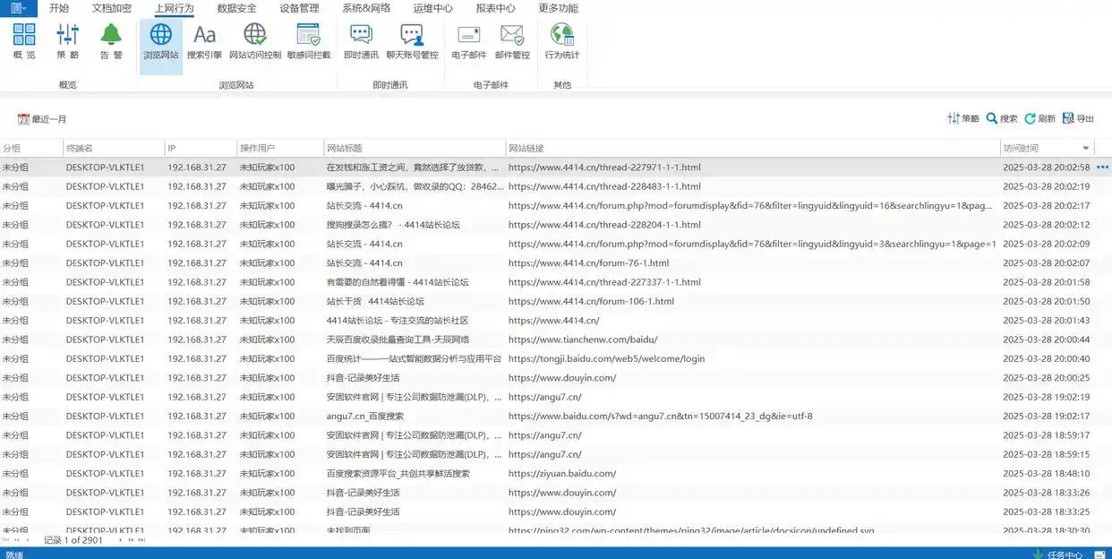 网站浏览监控:安固软件详细记录员工访问的网站URL、访问时间、停留时长等信息,并可开启网址黑名单或白名单功能。这样,企业可以禁止员工访问无关网站,确保员工将精力集中在工作上。