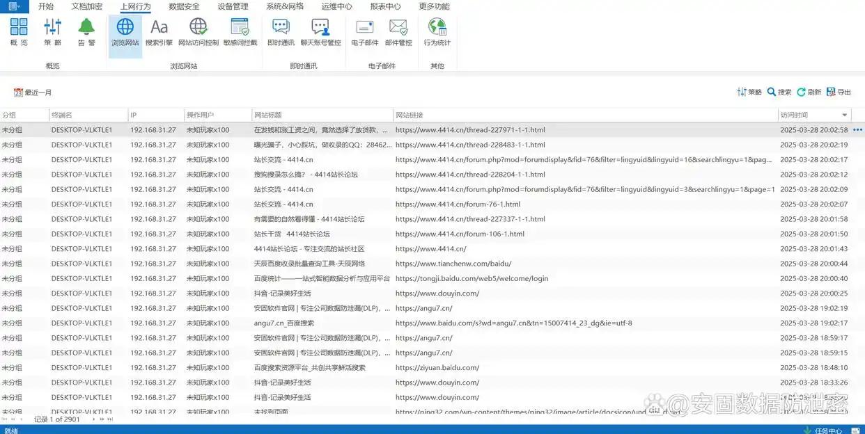 在网站浏览分析中,它不仅统计员工访问网站的次数和时长,还能分析访问的时间分布,帮助企业发现员工在工作时间内是否存在长时间沉迷非工作相关网站的行为。