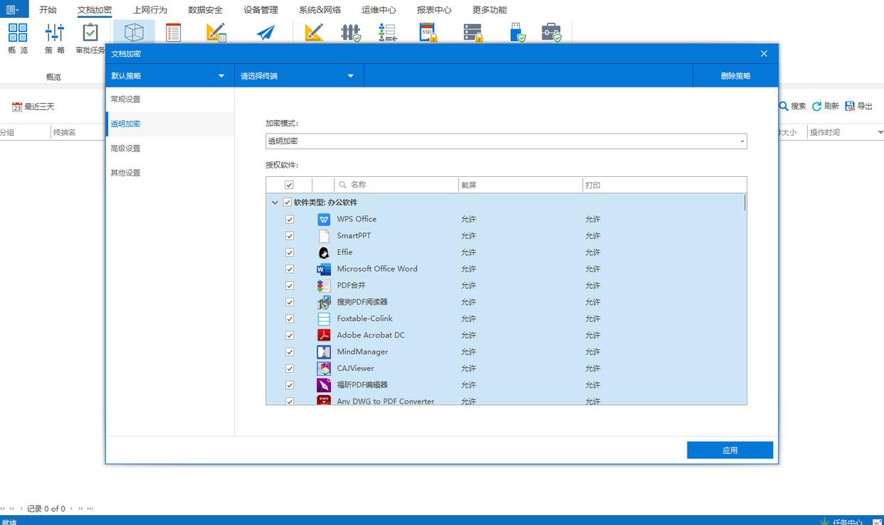 不加密:管理员可关闭阅读加密文件权限,已加密文件无法打开,新建文件也不再加密。