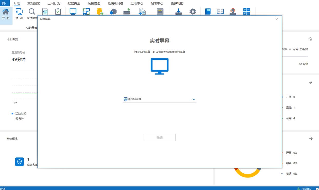 实时屏幕监控:支持16屏同步查看,管理员可一键切换不同终端画面,画质自适应网络环境,即使远程也能看清Excel表格的细节。