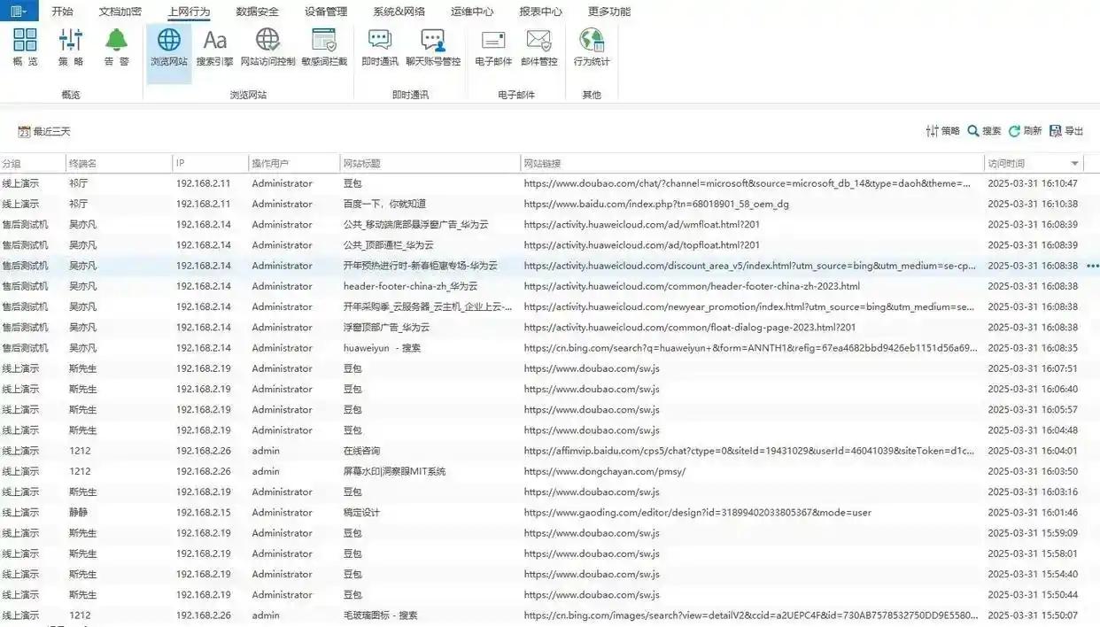 上网浏览记录:详细记录访问过的网站、搜索关键词、浏览时长。企业借此判断员工是否高效工作。例如,企业发现员工长时间浏览购物网站,可提醒其专注工作。