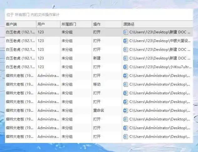 文件操作记录:详细记录文件的创建、修改、删除、外发、拷贝等多类操作,并生成可视化审计日志,便于追溯。