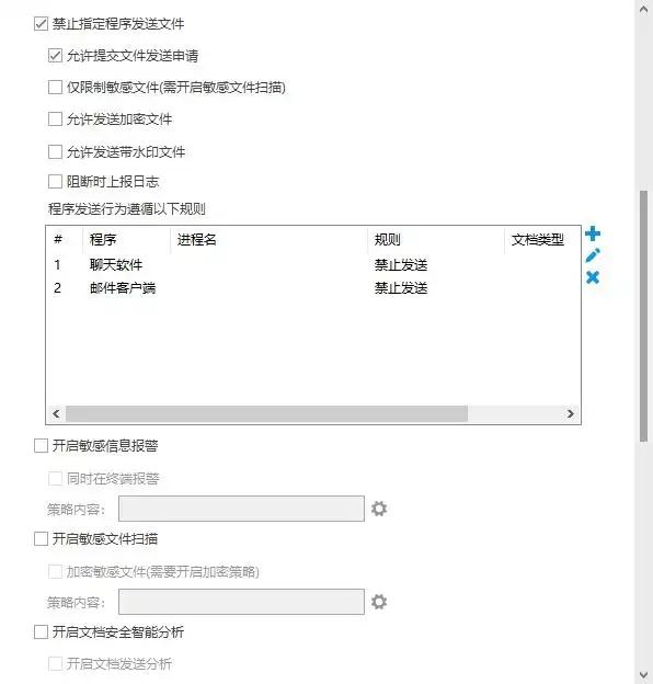 禁止程序发送文件:可通过进程级管控,禁止微信、QQ、邮箱等程序的文件传输功能,防止数据通过常见应用外流。