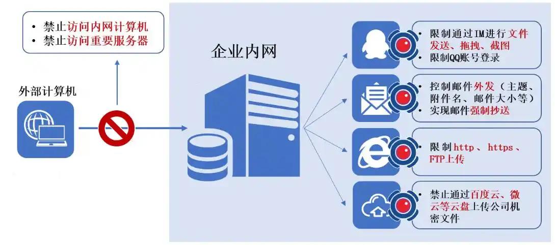 对于需要与外部合作伙伴或客户共享的文件,提供了外发文件控制功能,如禁止外发到特定的外部设备或通过特定的通信工具。