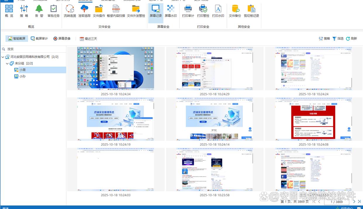 该系统以AI驱动的智能分析能力为核心,支持多屏幕实时监控、文件操作审计、网络流量分析及远程控制功能。