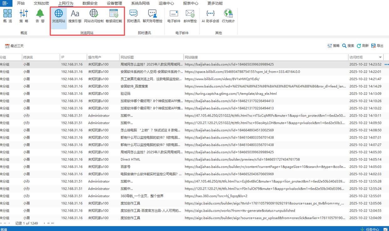 能够记录被控端电脑访问的所有网址,并可以根据需要设置网站过滤规则,防止员工访问与工作无关的网站,提高工作效率。