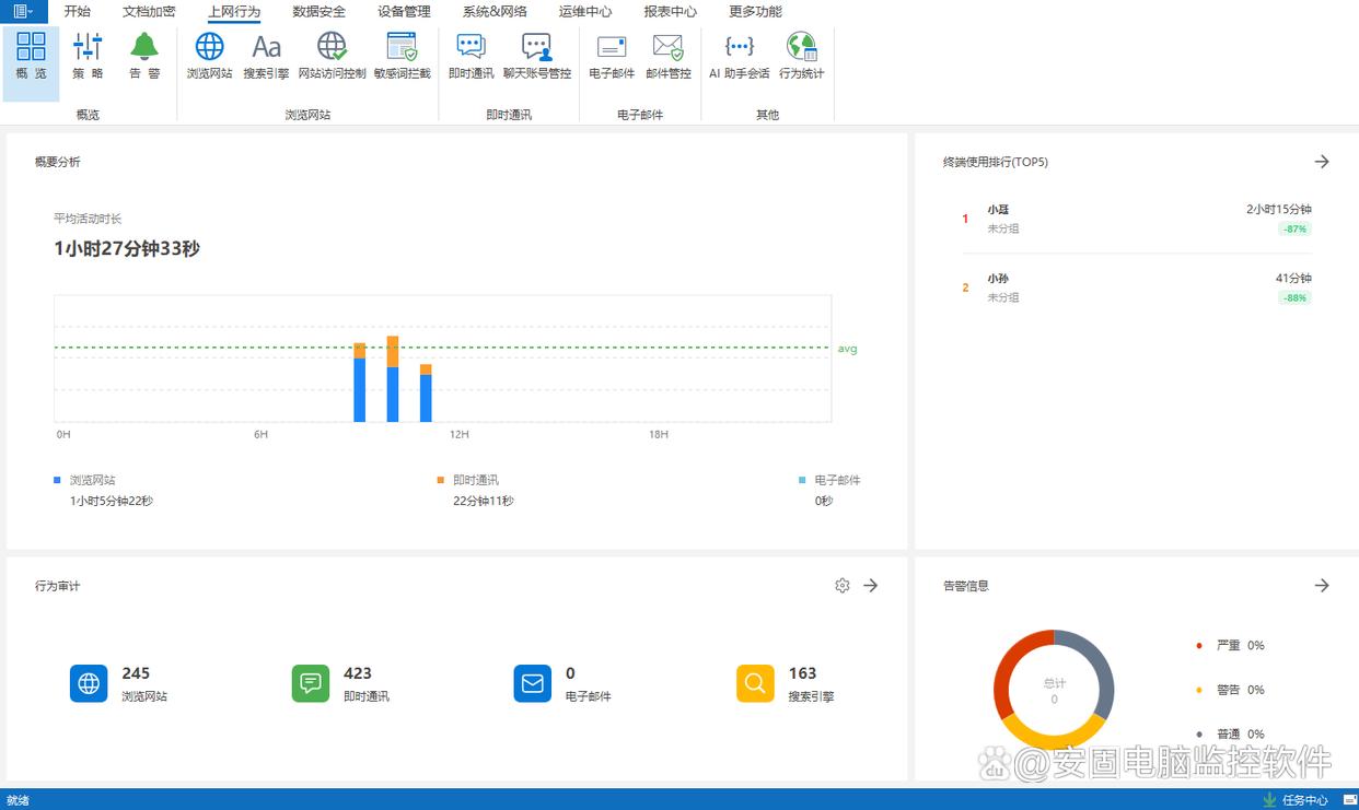 安固软件提供实时操作行为监控功能,记录每一次文件打开、编辑、复制、打印和外发行为。管理员可以通过完整日志追踪文件使用情况,及时发现异常操作或潜在风险,满足企业内部审计和合规要求,为数据安全管理提供强有力的支撑。