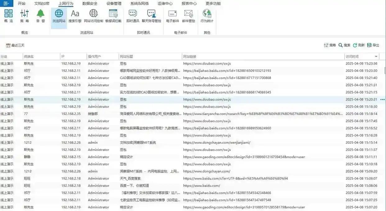 详细记录员工访问的网址、访问时间、停留时长等信息,企业可以根据这个记录,设置网站黑白名单,限制员工上网行为。