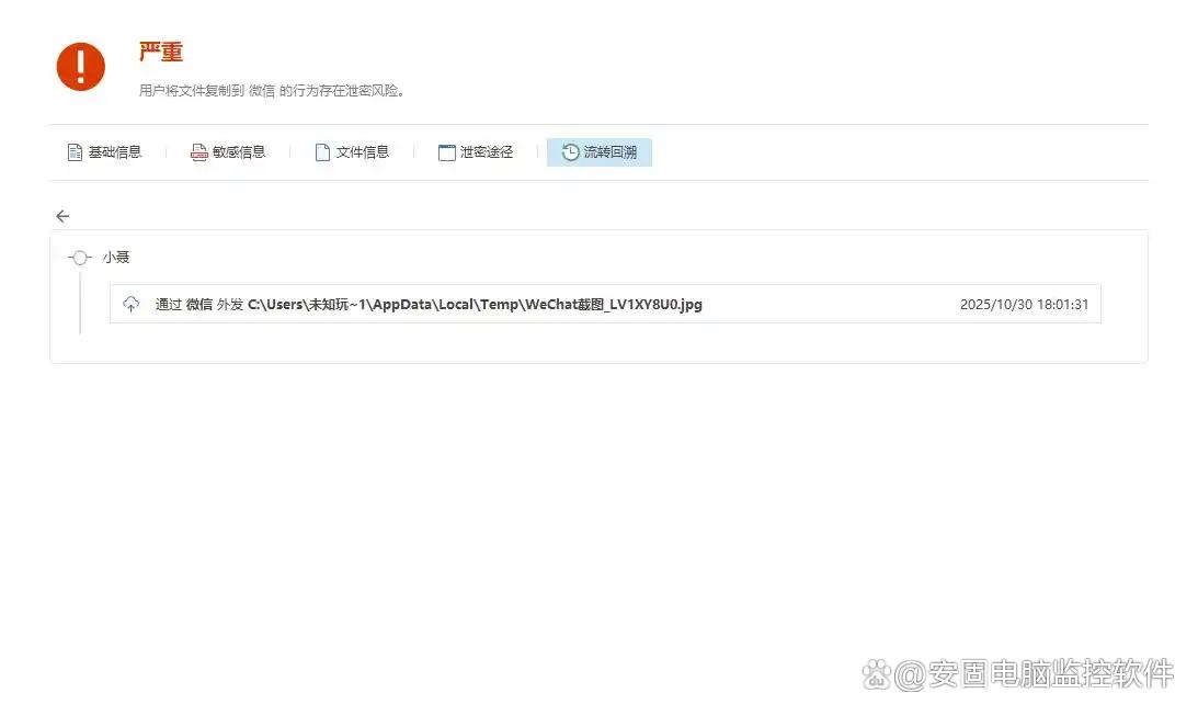 外发管控与审计追溯:针对文件外发,可根据外发对象信任级别和业务需求,对外发文件进行加密、设置有效期、限制打开次数等操作。同时详细记录文件外发全过程,包括外发对象、时间、文件内容摘要等信息,以便出现安全问题时,迅速查明原因,确定责任主体。