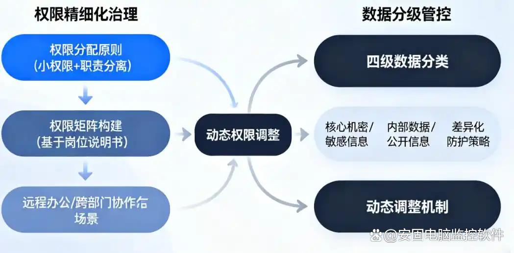 引入动态权限调整机制,结合员工实时工作场景自动适配权限;