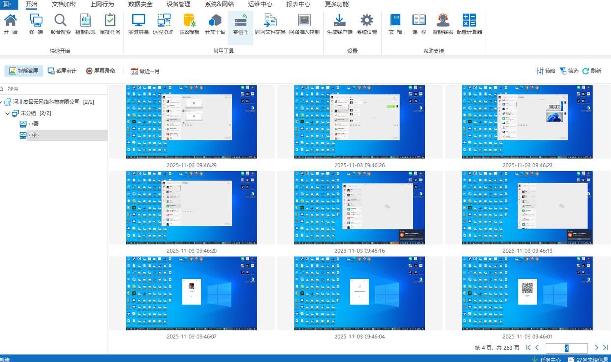 实时屏幕捕获:实时捕获和记录电脑屏幕上的活动,可同时查看12台。