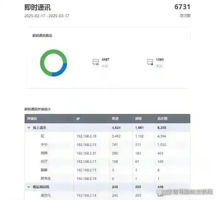 能监控微信、QQ、钉钉、企业微信等主流即时通讯工具,完整记录聊天内容,包括文字、图片、文件传输等,记录聊天时间与聊天对象。
