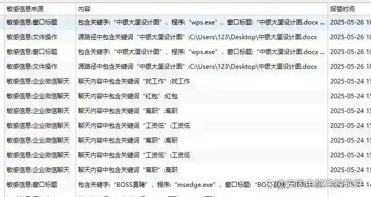数据防护:追踪文件30+操作(如批量重命名、压缩打包),敏感文件外发自动报警,曾帮助某金融机构拦截客户名单邮件外发事件。