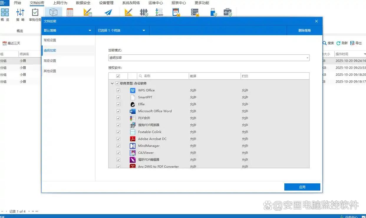 透明加密:采用先进算法对数据进行加密处理,员工在公司电脑打开或编辑文件时完全无感知,保存后自动加密。违规外发文件会直接变成乱码。