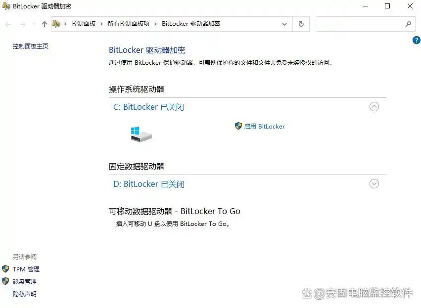 这是微软自家的加密功能,打开方式也很简单:右键U盘或硬盘分区,如果有“启用BitLocker”选项,点它,设个密码或保存恢复密钥就行。
