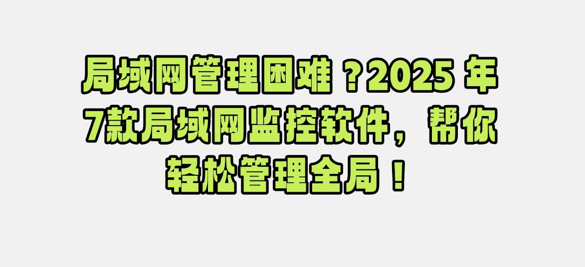 别愁!2025 年这七款局域网监控软件,从国产实力派到国际老牌都有,帮你把局域网管得明明白白,轻松掌控全局。