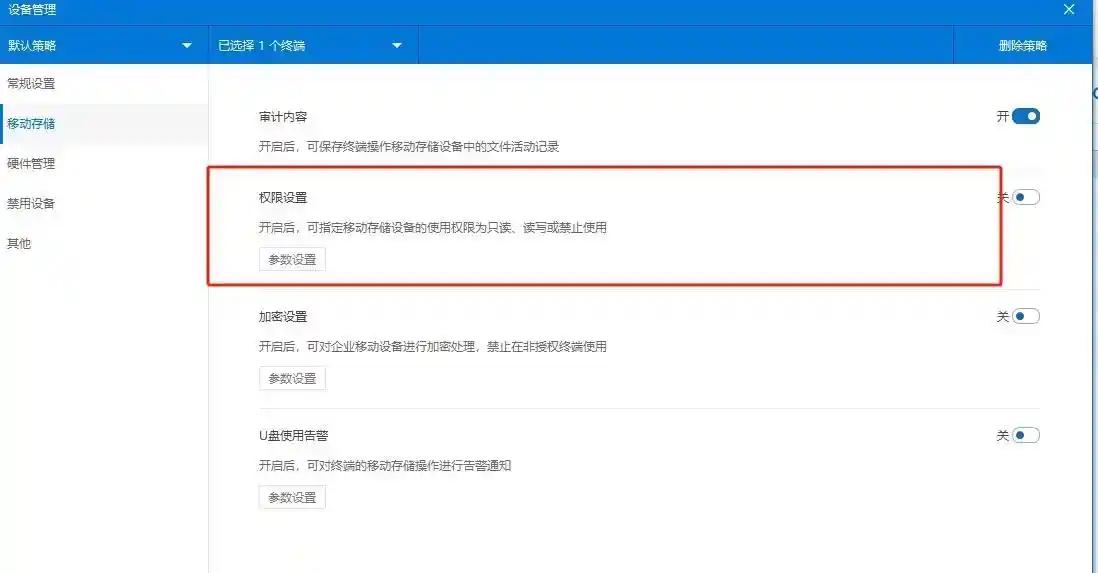 通过细致的策略设置,禁止终端使用USB端口连接除键盘鼠标外的其他设备,如U盘、移动硬盘等。这一功能从源头上减少了数据通过USB存储设备泄露的风险