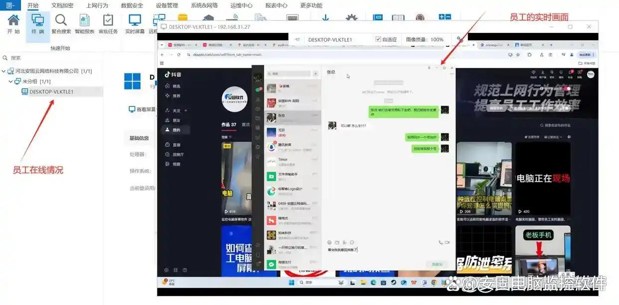 搜索与聊天监控:追踪搜索引擎查询内容及微信、QQ、钉钉等IM工具的聊天记录,检测“竞品”“离职”等敏感词实时预警。