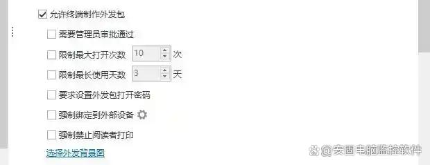 外发文件,心里没底?软件的文件外发包功能让你在外发文件时也能掌控自如。设置文件查看次数、时间、设备,甚至禁止打印,让你的文件安全无忧!