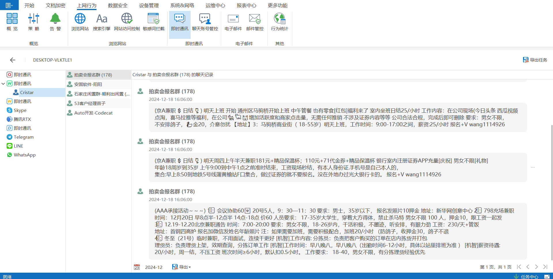 · 全面覆盖:可以监控并记录微信、QQ等即时通讯工具的聊天内容,帮助企业维护良好的沟通环境。