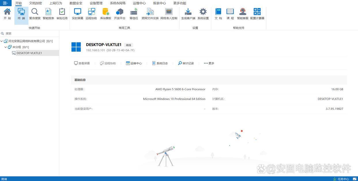 o 安固软件将开始实时监控指定设备上的电脑活动,并将数据同步至管理后台。