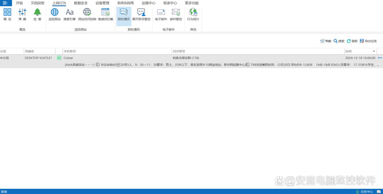 · 功能描述:支持对多种即时通讯软件(如QQ、微信、钉钉等)的聊天内容进行监控。