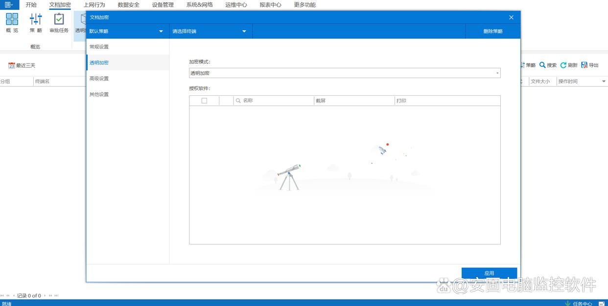 1. 安固软件支持对企业内部使用的各类应用程序进行管理。包括但不限于统计应用使用频率、限制或阻止非工作必需的应用程序运行等,优化软件资产管理。