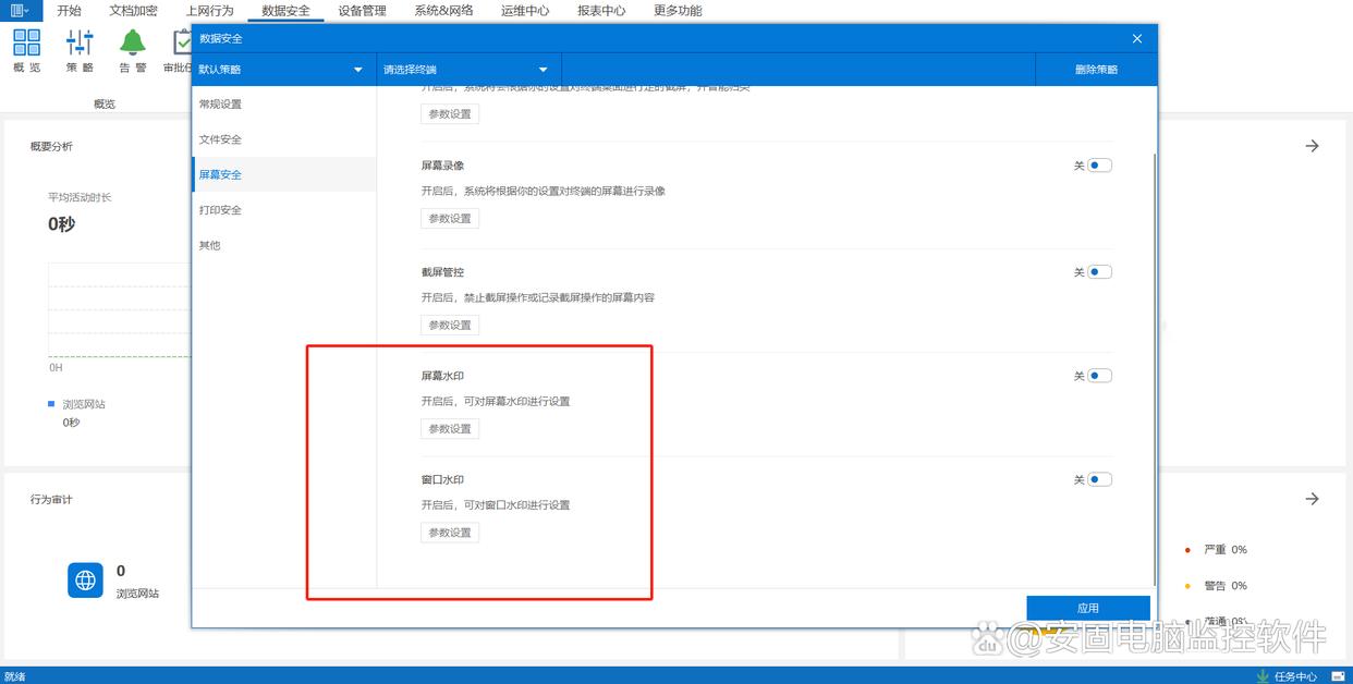 在显示的内容上添加不可见的屏幕水印信息,一旦发生信息泄露事件,可以通过水印追踪到具体的责任人,起到震慑作用。