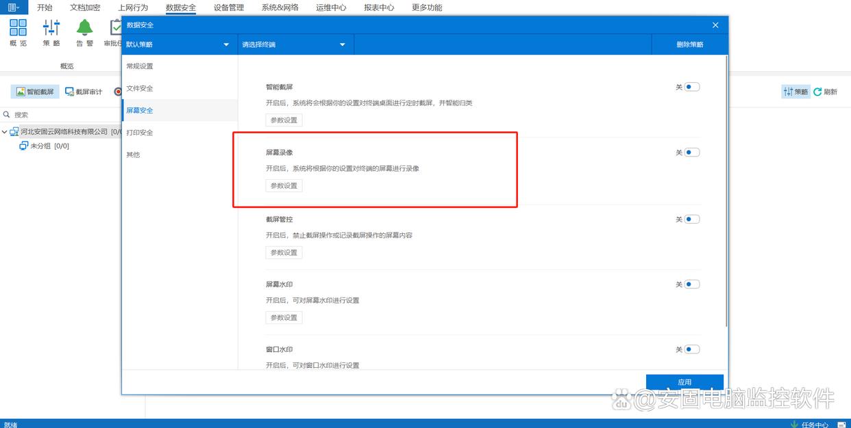 登录安固软件管理中心,进入“屏幕监控”模块,根据实际需求设置监控参数,如选择实时查看、定时截图还是屏幕录像等模式。
