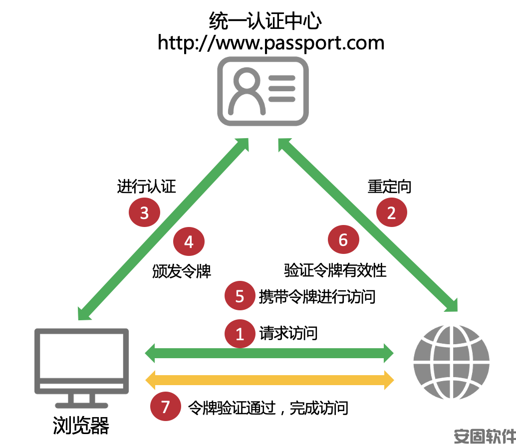 统一认证服务(CAS)是一种开放、简单且完备的身份验证协议。该协议是客户端、服务器与浏览器的三方约定,是大家都必须遵守的规则。我们把用户访问业务的流程做个简单的比喻,如下图: