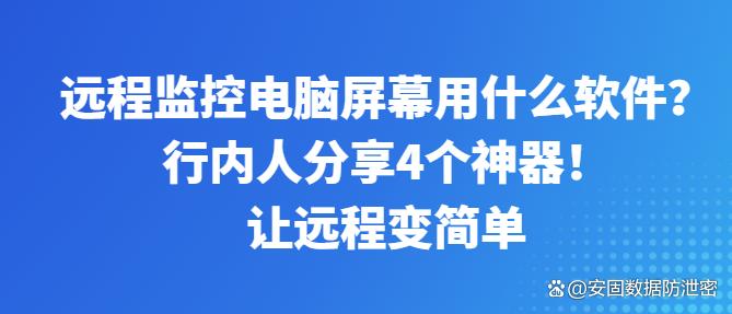 今天,作为行内人,我将为大家分享4款远程监控电脑屏幕的神器,其中安固软件以其卓越的性能和全面的功能脱颖而出,成为远程管理的首选工具。