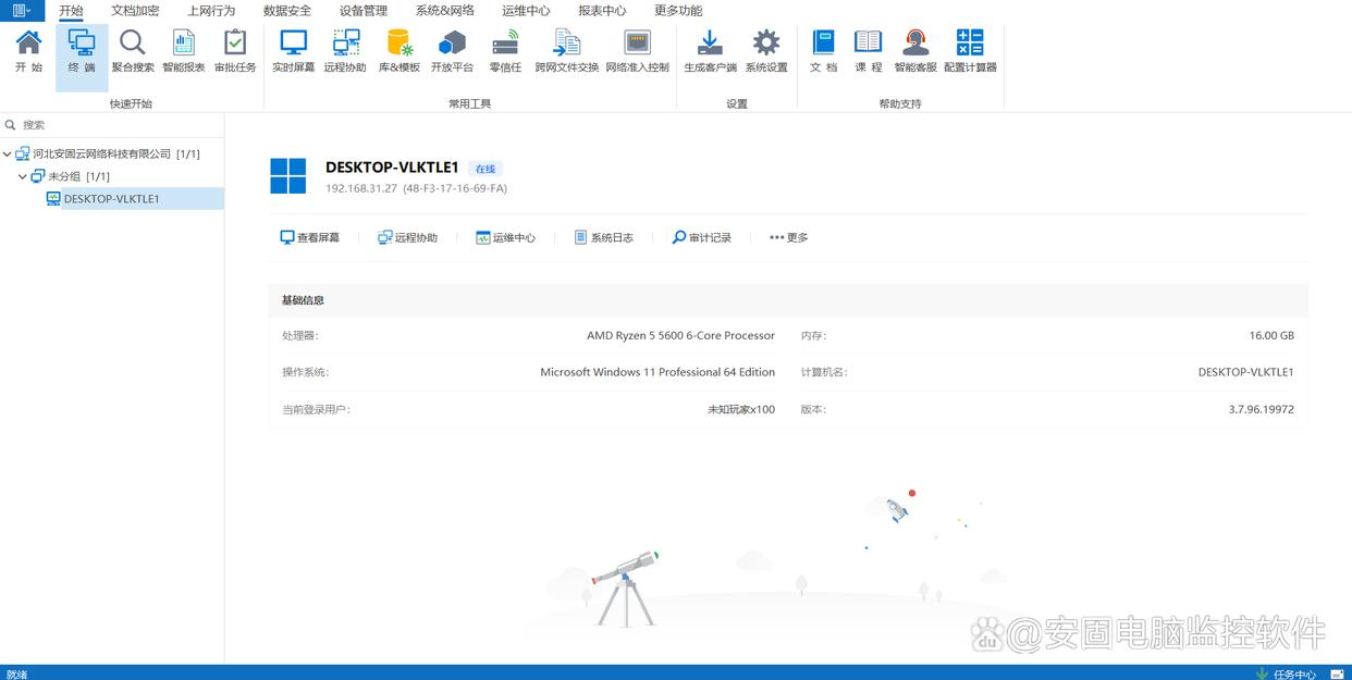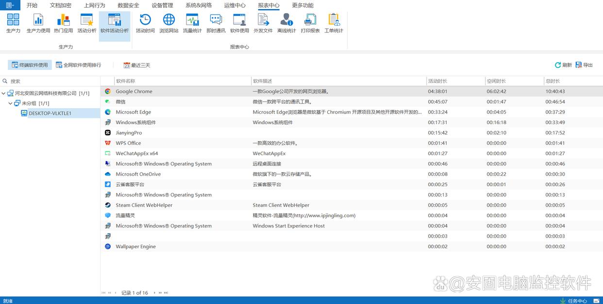 安固软件是一款集成了多种功能的企业级终端安全管理工具,其中包括强大的员工行为监控能力。它能够帮助企业实时监控员工的电脑使用情况,包括上网行为、应用程序使用情况等,为企业提供全面的数据支持以做出更加明智的管理决策。