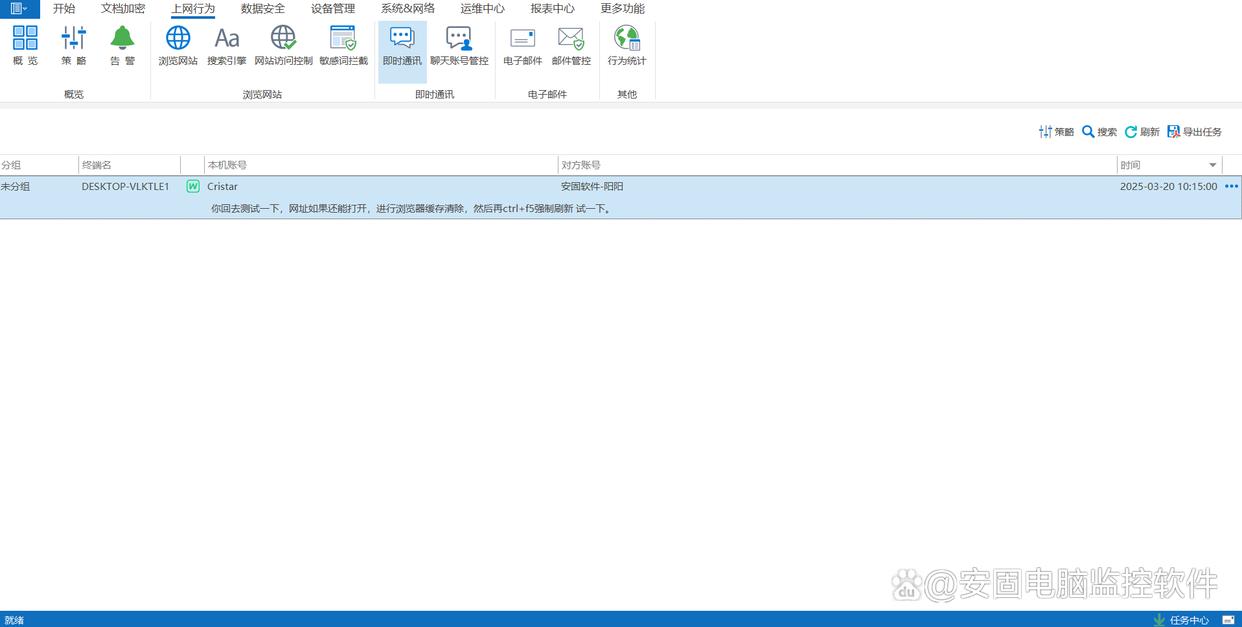 1. 在今天的数字化办公环境中,即时通讯工具是沟通的重要渠道之一。安固软件支持对企业内部及外部的聊天记录进行监控,防止机密信息泄露。