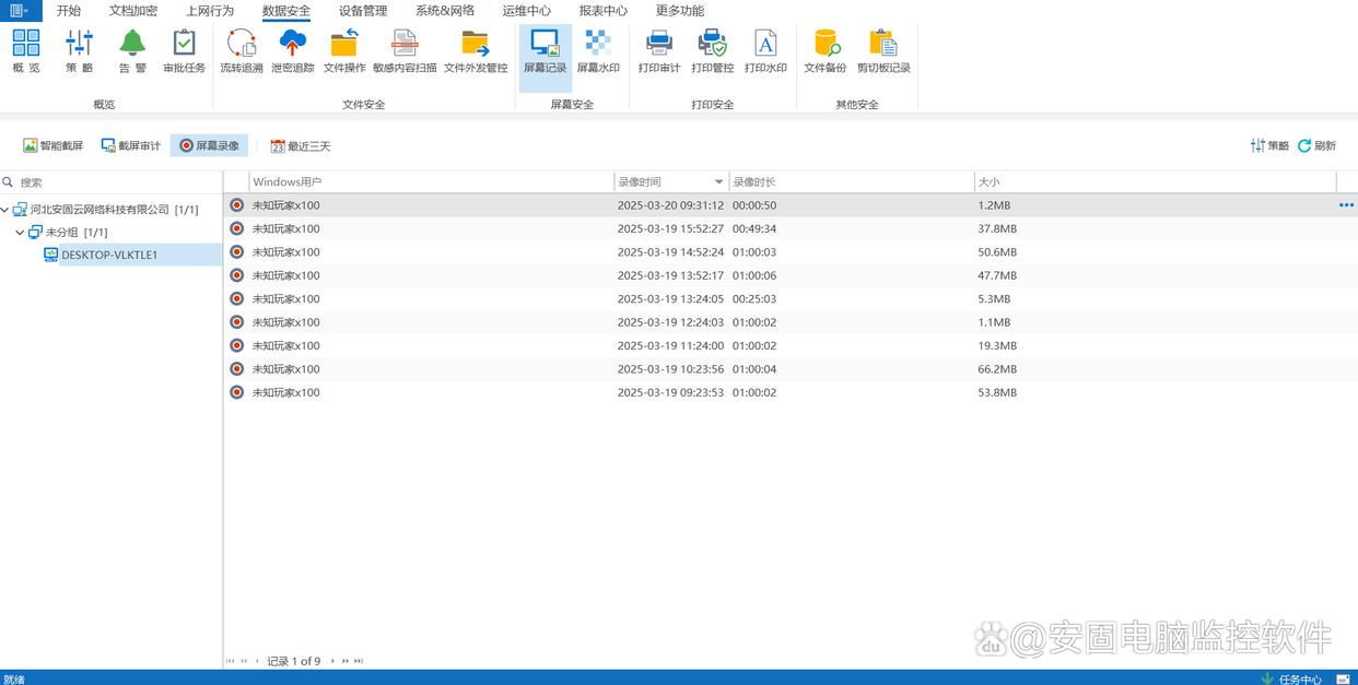 1. 为了更直观地了解员工的工作状态,安固软件还具备屏幕录像和定时截屏功能。管理员可以选择特定的时间段录制员工桌面活动